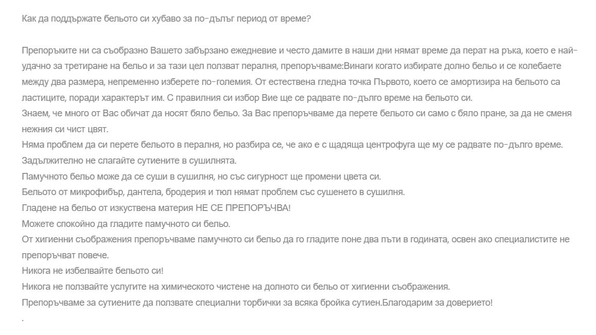 Никога не ползвайте услугите на химическото чистене на долното си бельо от хигиенни съображения.